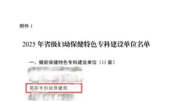 喜报 |简阳市妇幼保健院院获评“四川省级婚前保健特色专科建设单位”