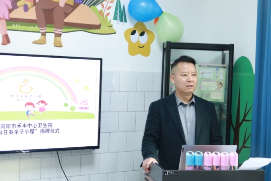 揭牌仪式上,简阳市禾丰中心卫生院党支部书记罗德军同志致辞,罗书记对亲子小屋的启用给予了高度肯定,强调这是医院延伸妇幼保健服务、关爱儿童健康成长的重要举措。未来,简阳市禾丰中心卫生院将以亲子小屋为平台,为大家带来更贴心、更全面的育儿服务。
