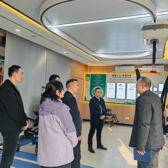 石板滩街道卫生服务中心智能化康复中心作为区域内基层智慧医疗的标杆,是2025年四川省民生实事项目落地的重要成果,其整合残疾人“康复之家”功能,构建了覆盖全龄段、多维度的智能康复服务体系。在中心副院长巫继承、康复科主任青松的陪同下,简阳市禾丰中心卫生院学习团队实地参观了智能康复大厅、物理治疗室、作业训练室、言语治疗室等功能区域,近距离观摩了上下肢康复机器人、天轨训练系统、智能认知训练系统等高端设备的临床应用,详细了解了设备如何通过实时监测生理数据,为患者量身定制康复方案。