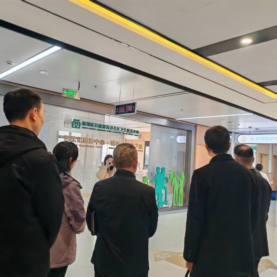 交流过程中,双方围绕“智能康复中心”的核心议题展开深度探讨。石板滩街道卫生服务中心团队分享了其依托大数据模型构建的“筛查—评估—治疗—监测—康复”全周期健康管理闭环,以及智能技术在提升康复精准度、增强患者训练依从性等方面的实践经验——通过智能系统动态优化训练方案,让康复过程从“经验驱动”转向“数据驱动”,同时结合中医适宜技术实现“中西融合”的多元化服务模式。我院团队就智能化康复在临床应用中的难点、智慧设备与现有诊疗体系的融合路径等问题与对方深入交流,现场学习氛围浓厚。