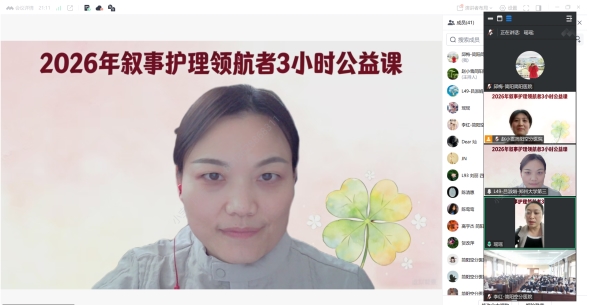 为推动人文护理深度落地,助力护理人员从“疾病管理者”转变为“从看见病到看见人”的叙事践行者。1月17日下午,简阳空分医院开展了叙事护理“3554四叶草”模型线上专题培训活动,本次培训特邀郑州大学第三附属医院感染科护士长、全国首批叙事护理领航者吕淑娟教授主讲,全院100余名护理人员参与培训。